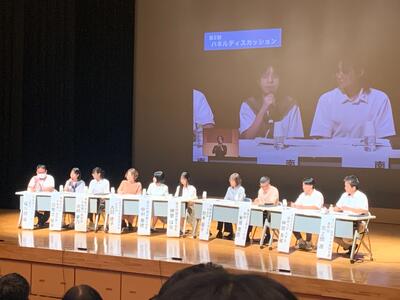 10月12日南風原町中央公民館で戦後80 周年平和祈念事業の第2回平和シンポジウム「次世代へつむぐ沖縄のこころ」が開催されました。第1部で本校の平和実行委員会のメンバーが取組を報告し、パネルディスカッションに参加しました!