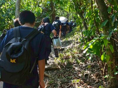 本日10/16(木)、2学年は遠足で、学校から本部公園まで往復しました。