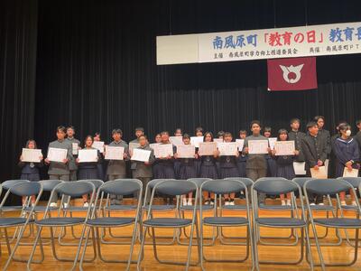 1月18日16:00~中央公民館で本町の学力向上推進の一環として、他の模範となる生徒を表彰する「教育長表彰」が行われました。本校から22名が表彰されました。