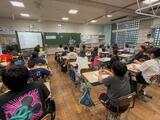 今回は、平田拳一朗選手と友利貴一選手が講師として指導して下さいました。2人ともFC琉球に所属していたことがあります。プロからの直接指導に、子どもたちは目を輝かせながら必死にボールを追っていました。貴重な機会を設けて下さりありがとうざいました!