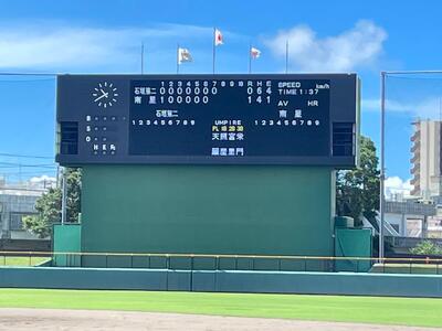 23日、コザしんきんスタジアムで野球の県大会が開催されました。 吹奏楽部も加わった全力応援でした!