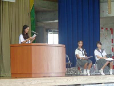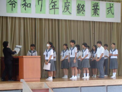18日3校時、表彰式を行い、そのまま終業式を行いました。各学年代表からのあいさつ、校長先生の講話を行いました。その後、県大会の激励を行いました。2学期みなさんが元気に登校してくれることを楽しみにしています。