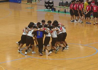 試合開始前に両チーム(白が南星中)で円陣を組んでいました!