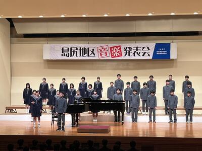 11月28日豊見城中央公民館で島尻地区音楽発表会が開催されました。本校から、学級合唱に3年6組、重唱(1年生3名)、有志合唱55名(1年生13名、2年生24名、3年生18名)が参加し、楽しんできました♪