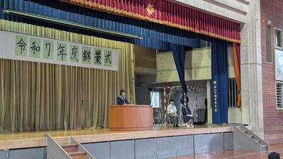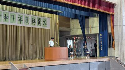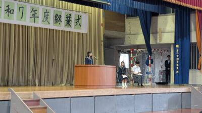 12月25日3校時に体育館で2学期の終業式を行いました。各学年の代表(1学年:大城千愛 さん、2学年:山田侑志さん 、3学年:長濱裕希さん)から2学期の成果と反省、3学期に向けてのあいさつをもらいました。3名共に素晴らしいあいさつでした!最後に校長先生から講話していただきました。
