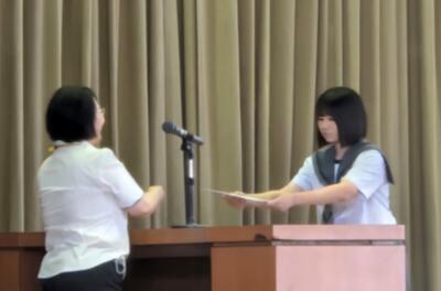 全校生徒の前で校長先生から任命賞をいただく形をとりました。